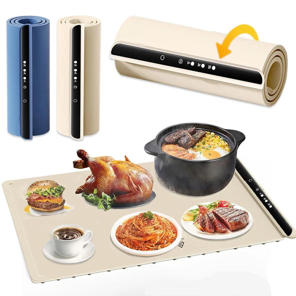 [Premium Silicone Nano Material]Crafted from top-tier flexible silicone nano material, our electric warming tray offers durability, splash-proof protection, stain resistance, and oil resistance. Fold and store without worrying about unsightly creases, ensuring lasting quality.